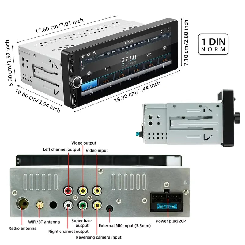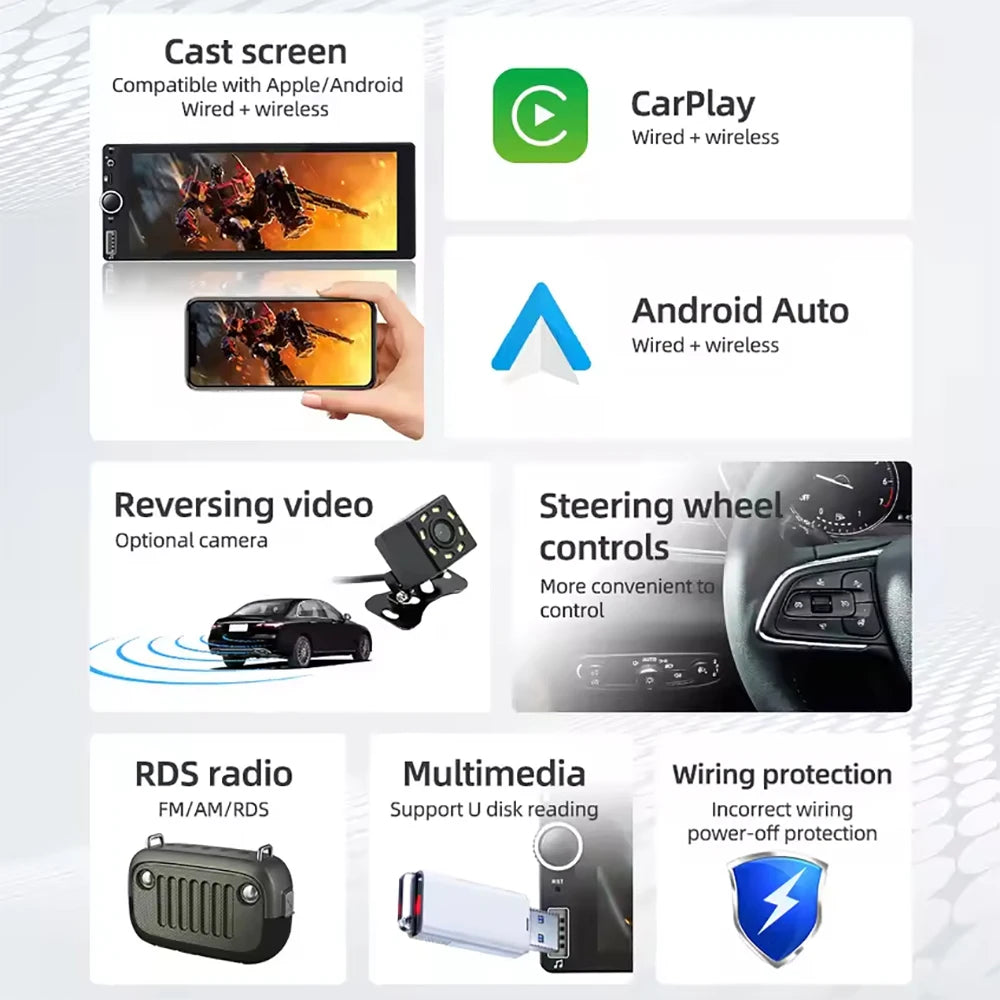 1din 6.86" HD Car Radio Multimedia Carplay Touch Screen Mirror Link Stereo Bluetooth USB FM Camera MP5 Player