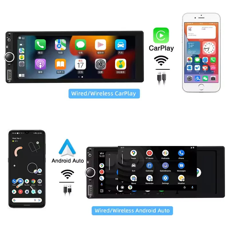 F6021 is a single ingot car player with simple and practical functions, supporting wireless carplay and Android auto, including BT/FM/USB/TypeC functions, adding new fun to your driving entertainment