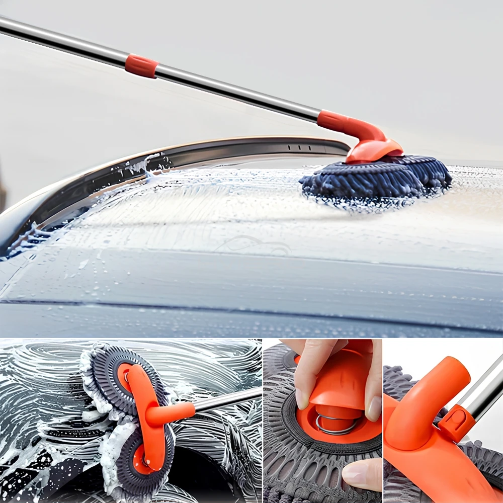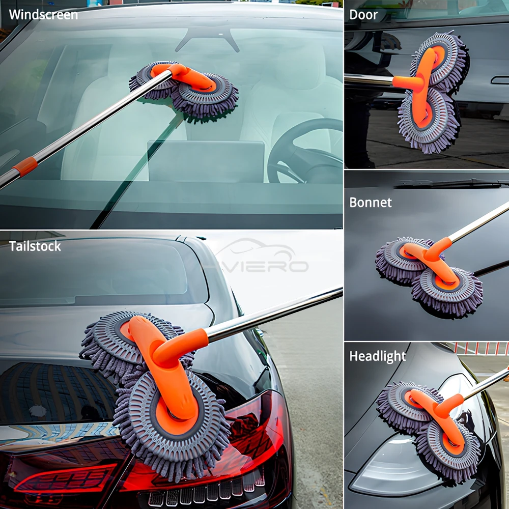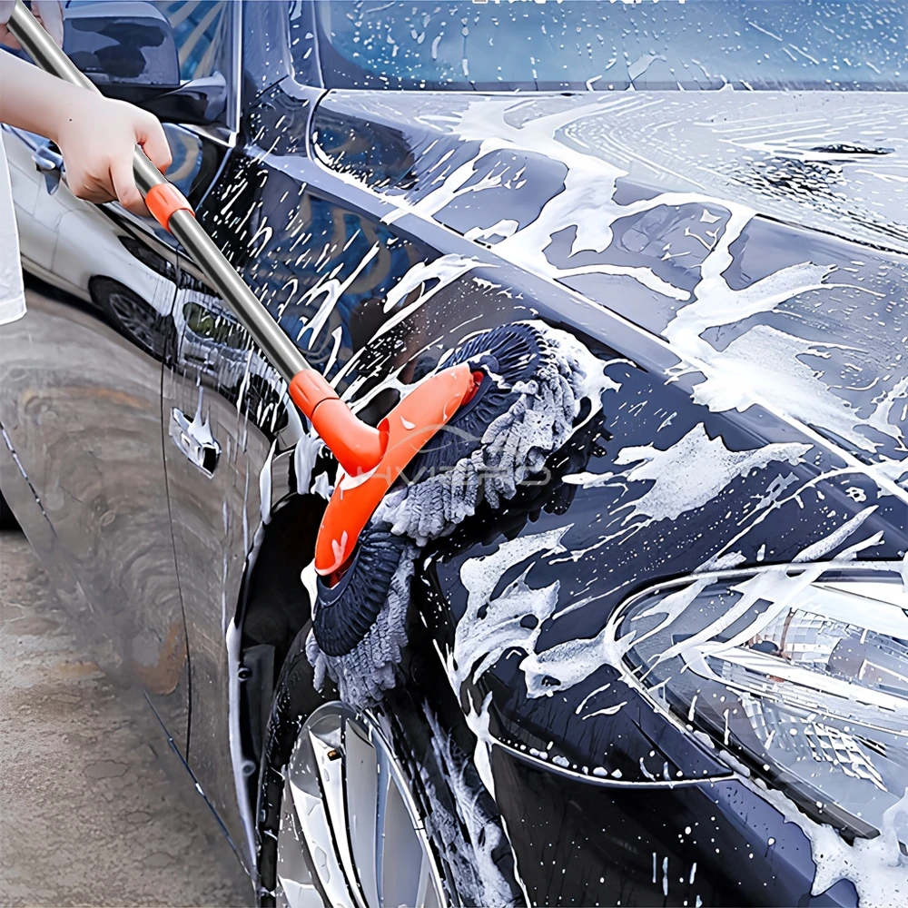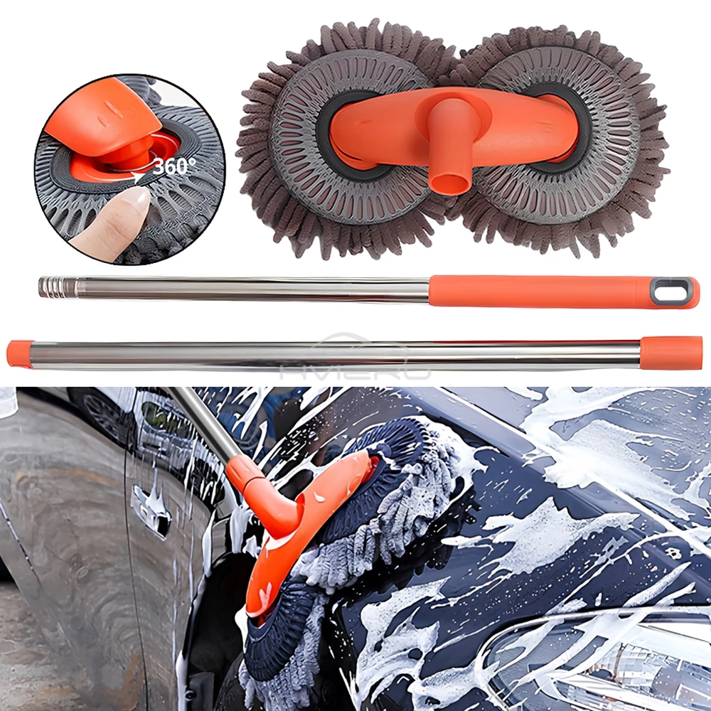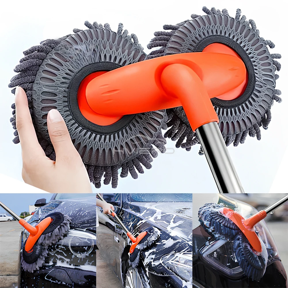 1pcs Multipurpose Car Cleaning Brush Washer Mop Chenille Double Brushs Head Roof Window Clean Three-Section Telescopic Wash Tool