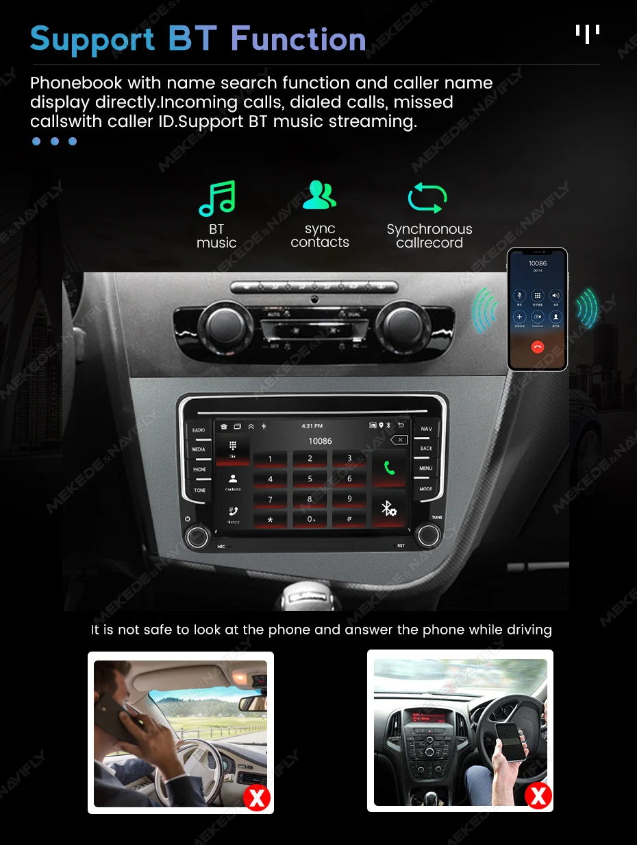 Built in intelligent BT system, supports mobile BT pairing, hands-free dialing, supports steering wheel buttons for street listening, chat with others, ensuring your driving safety