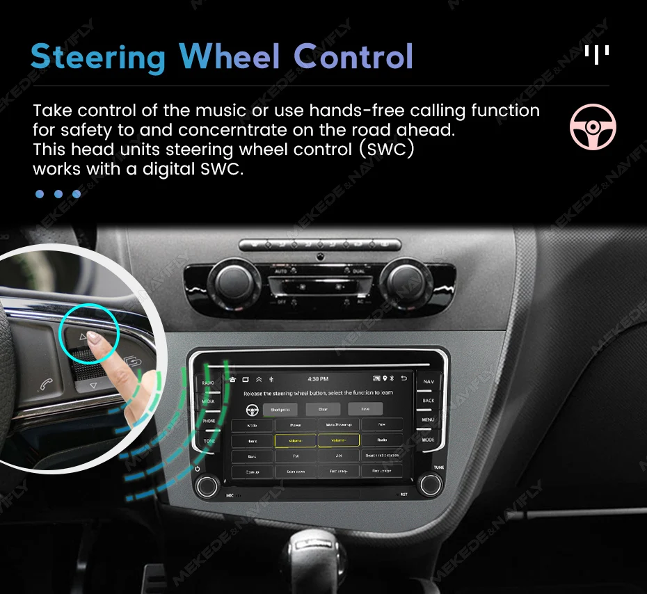 Control music or use hands-free calling function to ensure road safety ahead. The unit's steering wheel control (SWC) works with digital SWC.