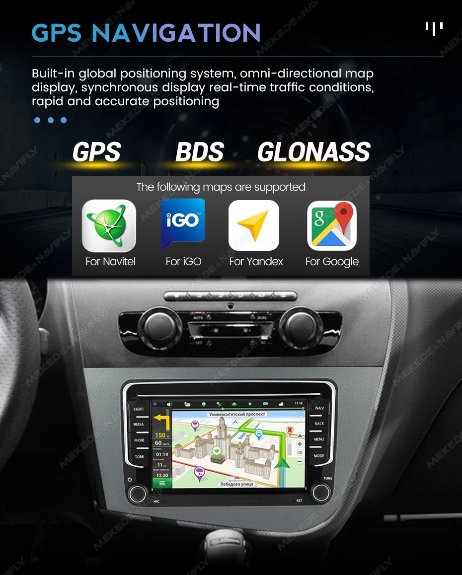 Built-in global positioning system, omni- directional map display, synchronous display real-time traffic conditions, rapid and accurate positioning