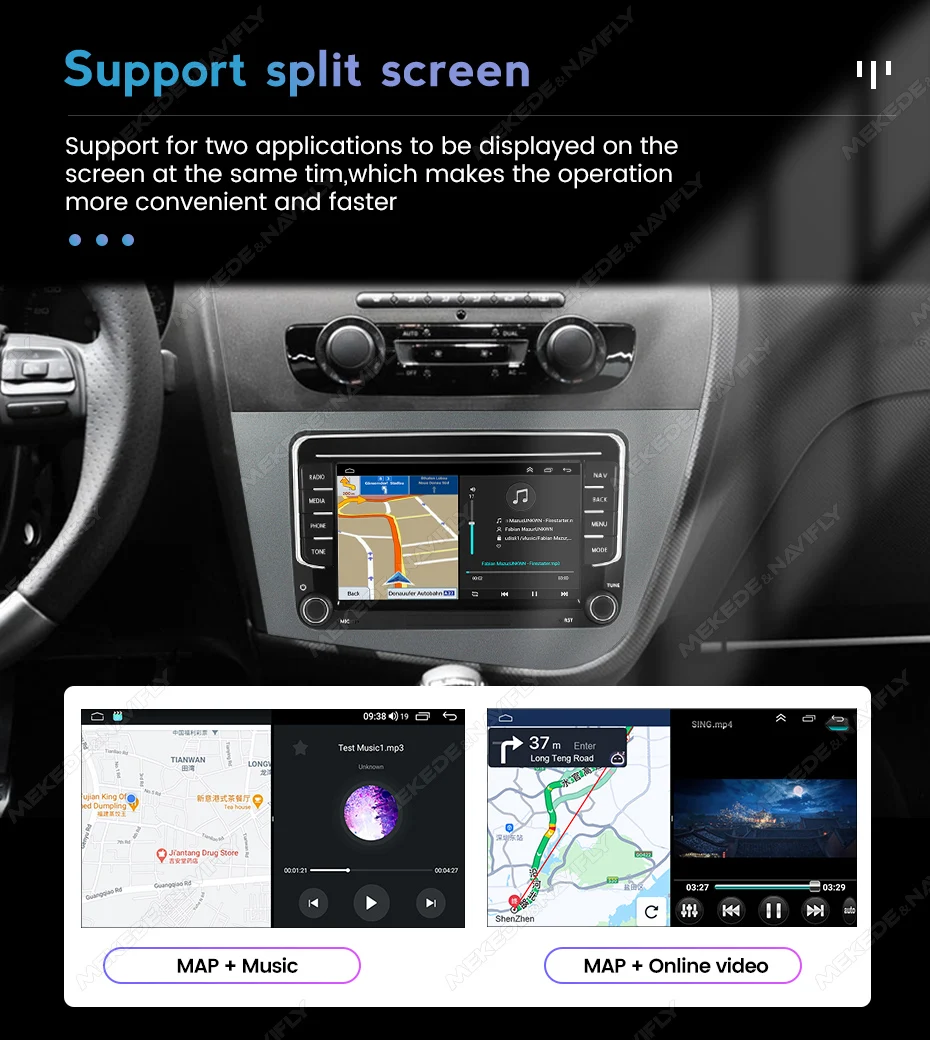 Special Features: wifi function,Support steering wheel control,Support Can-Bus,Built-in GPS,Mobile Phone,MP3 players,CarPlay,android auto,Reversing Input,Split Screen