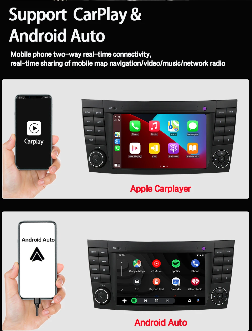 LELV 7inch Touch Screen MP3 Car Multimedia For Benz E-Class W211 2002-2008 Android Radio carplay