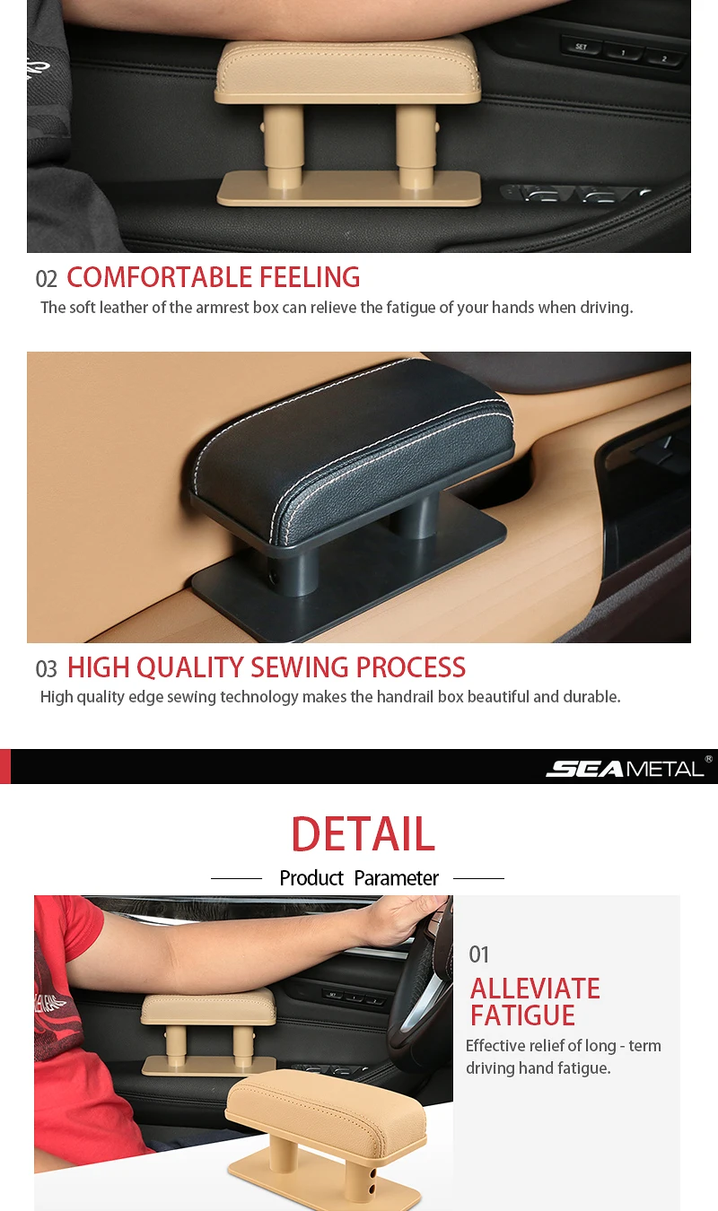 SEAMETAL Car Arm Rest Cushion Extension Adjustable Height Elbow Support Cushion Reduce Fatigue Universal Auto Armrest Support