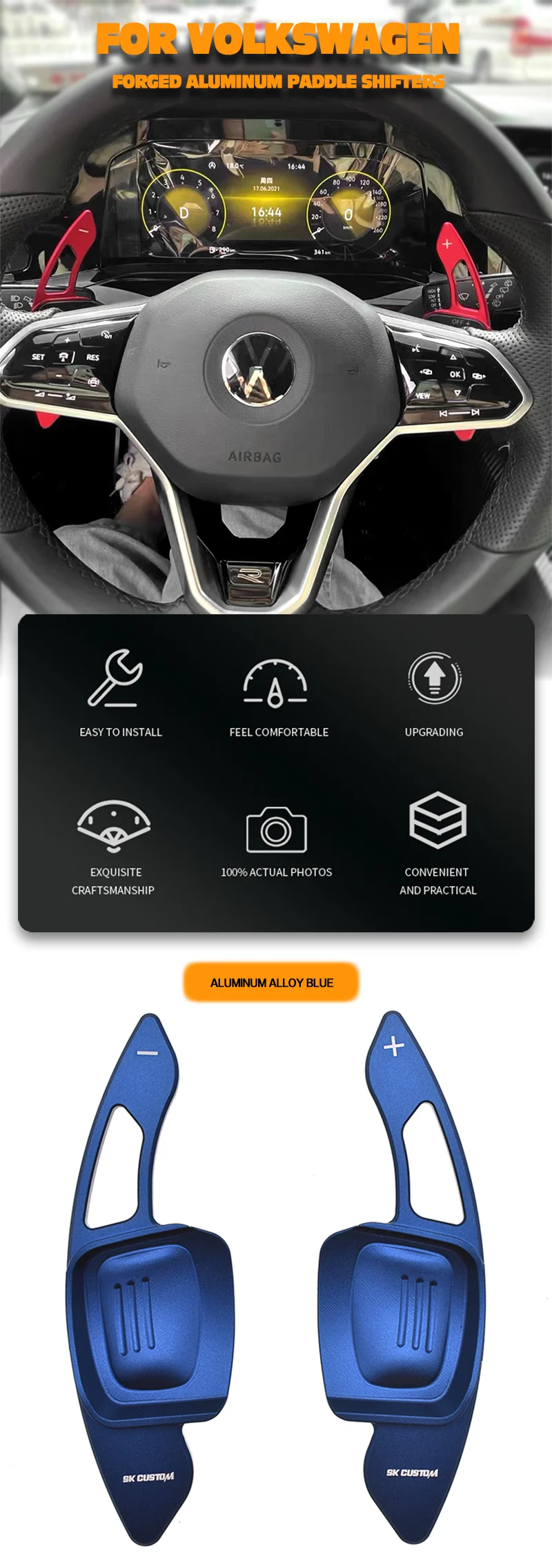 SK CUSTOM Automotive Aluminum Steering Wheel Paddle Shifters For Volkswagen Golf 8 MK8 GTI RLine